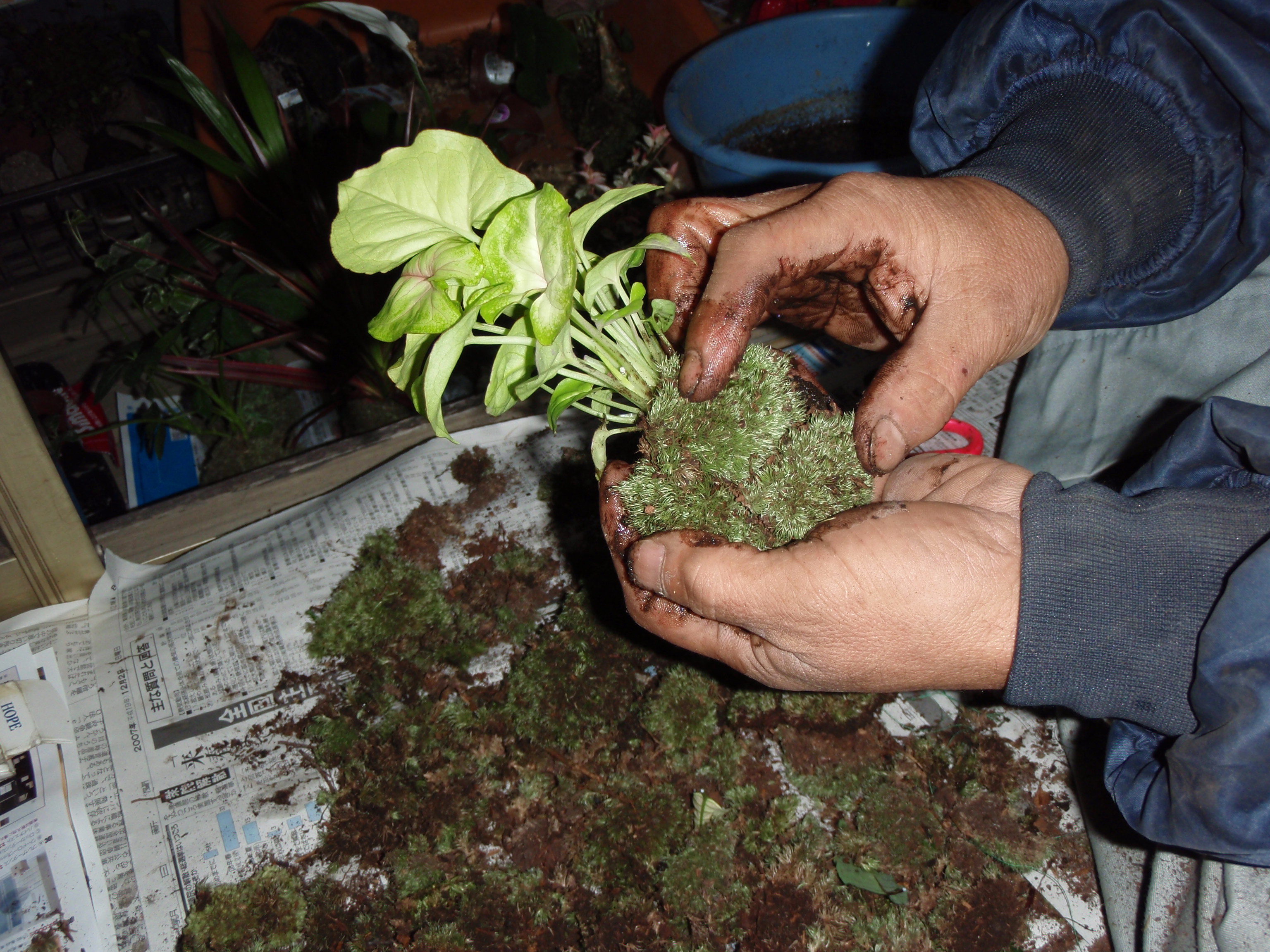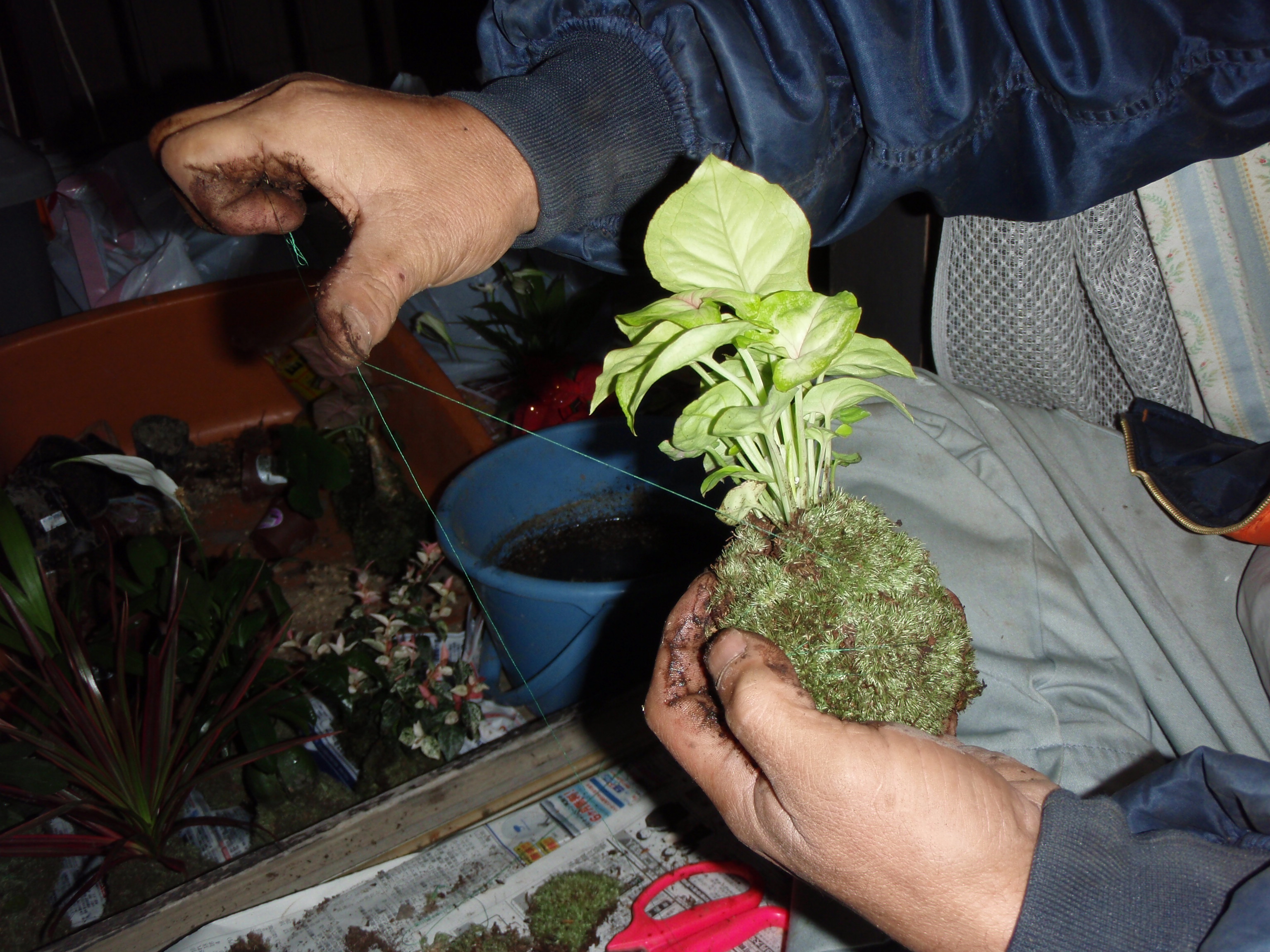 用土(ケト土・赤玉土・富士砂・苔・植物・木綿糸